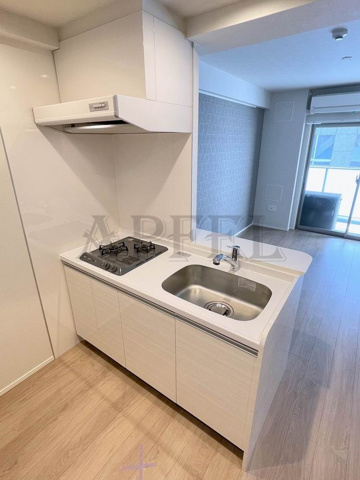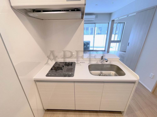 ガス2口コンロ+広めの作業スペースが確保されているため、自炊をする人にとって使い勝手が良く同時調理もしやすい構成になっています。