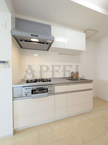 コンロはグリル付きの3口ガスコンロを採用しており、自炊派の方にも嬉しい仕様で調理スペースもしっかり確保されているため、同時調理や下ごしらえもスムーズに行えます。