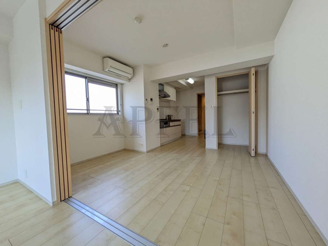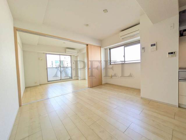 リビングと洋室はスライド式の間仕切り扉で仕切られているため、扉を開ければ広々としたワンルーム感覚、閉めれば来客時や就寝時に空間を分けられるなど、ライフスタイルに合わせた使い分けが可能です。