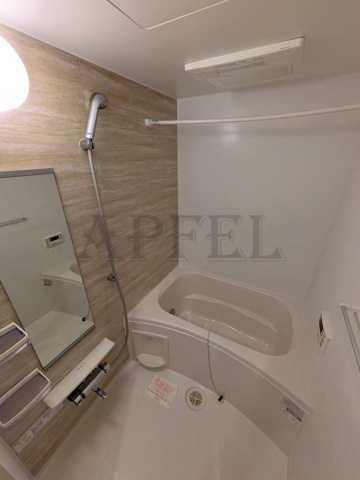 浴室は木目調パネルを採用しており、シンプルながらも落ち着きと高級感を感じられるバスルームです。白を基調とした空間にアクセントパネルが映え、毎日の入浴時間をリラックスできる空間にしてくれます。
