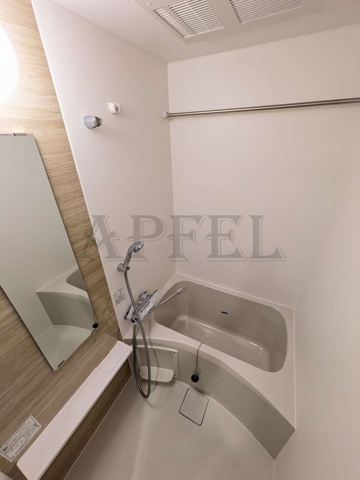 浴室は清潔感のあるユニットバス仕様で、壁面は明るく圧迫感の少ないデザイン。浴室乾燥機が設置されているタイプであれば、梅雨時期や花粉シーズンでも室内干しが可能です。